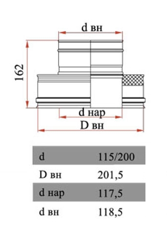 Переходник с d115/200 на d115 | Заглушка (переход) термо-моно Дымок предназначен для промежуточного подключения к утепленной трубе (сэндвич, 115/200 мм) одноконтурной трубы (115 мм). Толщина изоляции 40 мм. Выполнена из нержавеющей стали марки AISI 439 0,5 мм.